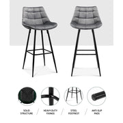 With its velvety and steely overtones, our Artiss Audrey Bar Stool is designed to look and feel good with every sitting. Meticulously crafted with heavy-duty metal with chic matt black finish, the bar stool features a tufted rich grey velvet fabric integrated seat and backrest that feel comfortably smooth and look absolutely classy. The contoured backrest also provides appreciable support while the anti-slip rubber feet keep the bar stool firm and steady even with robust use. Not least, the metal footrest lets you perch in style, feet up. Perfect for your home, office, bar or cafe, our bar stool is a masterpiece of creative flair in more ways than one.