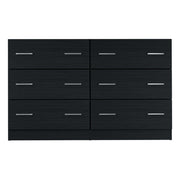 Whether you're starved for space or looking to hide away all the mess, a chest of drawers is a must-have. Artiss' 6-drawer lowboy makes an ideal addition to any home, be it a one-bedroom apartment or a big family home. It boasts the right mix of aesthetics and function, so you don’t have to sacrifice your style. Featuring a contemporary design, this 6-drawer lowboy brings irresistible charm to the modern world with a presence that exudes class and heritage. With its six spacious drawers, our lowboy helps ease your storage woes, and you have ample storage space to keep everything organised and tidy. It comes in gorgeous black shade that will complement any home interior style. Furthermore, the lowboy features sleek handles for a stylish look, and the smooth, anti-rust coated runners make for hassle-free operation. The chest of drawers is crafted from thick particle board with melamine finish, which ensures durability and ease of maintenance and cleaning. With so much that this piece has to offer, shop our 6-drawer lowboy right away!