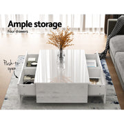Keep all your books, magazines, remote controls and other entertainment paraphernalia from cluttering up your living room with our Artiss Coffee Table. Four drawers, with two on each side, provide flexibility and ample storage space for all your necessities. The longer drawer boards and anti-rust runners also allow for a smooth and hassle-free operation at all times. The table is not only practical but also stylish with a handle-less design to maintain a sleek appearance. The contemporary and linear design means that the table will be the perfect addition to your modern living room. Or any other room, for that matter. Made of quality particle board, the table is built to last. And the UV high-gloss finish not only makes the table attractive, but also easy to clean.