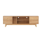 Style and functionality blend together in the beautiful Asa Entertainment Unit from Artiss. This lowline entertainment unit has the perfect height and storage capacity for all your entertainment needs, from your television to your sound system and consoles. The simple handle-less design and natural wood-grain finish will blend in perfectly with modern homes. Made from thick particleboard with a smooth melamine finish and solid rubberwood, the unit is sturdy and durable for long-lasting use. Four generous storage drawers and three open shelves with cable management are perfect for your media, books, equipment and other trinkets. The solid rubberwood legs feature anti-slip feet to ensure the unit stays standing and prevents scratches to your floors. Easy to assemble and even easier to maintain, the Asa Entertainment Unit will keep your home theatre organised for years to come.