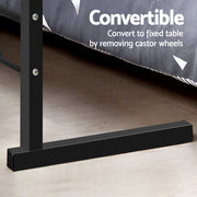 Designed to be strong and lightweight, our Mobile Laptop Desk has ample desk area to work efficiently without feeling cluttered. The height is easily adjustable to your preference and the U-shape design fits in well with most furniture such as sofas and beds to get a comfortable sitting position. The castor wheels rotate 360 degrees and can be readily locked down in place. Or, if you like, remove the detachable wheels for a more permanent fixture. Not least, with its thick 17mm MDF board desk top and sturdy powder-coated H-shape steel frame, our Mobile Laptop Desk is absolutely versatile to function as any type of table top.