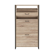 You are shoe proud. That is why you need ample space for all that wonderful footwear. Organise and save your floor space with our Artiss Shoe Cabinet and have a clutter-free entrance at all times. The three storage compartments are pull-down for easy access and have adjustable shelves so that they can fit different footwear of all shapes and sizes. In fact, up to 24 of your favourite pairs would fit comfortably in it. Solidly constructed with metal side frames, thick particle board and smooth paper veneer finish, the shoe cabinet is strong and durable to withstand daily robust use. Not least, the eclectic industrial design with beautiful black vintage-style handles definitely lends a touch of elegance to any home.