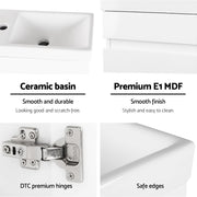 Add a touch of modernity to your bathroom with our Bathroom Vanity Unit. With its MDF board construction and high-gloss finish, the vanity cabinet looks absolutely flawless and feels strong and stable with every day use. Inside, there is ample room for all your bathroom essentials. On top, the crystalline ceramic basin is smooth and highly resistant to scratches, leaks or bacteria growth. All in, our bathroom vanity unit is a definite plus for your modern bathroom.