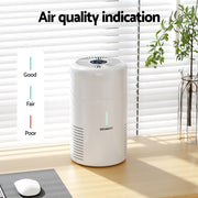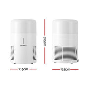The Devanti Air Purifier, equipped with an H-11 grade HEPA filter and an activated carbon filter, offers enhanced air purification. It displays air quality through three color indicators and allows for customisation with four fan speeds. Safe for families with a child-lock feature and sleep mode, this compact and quiet device is ideal for creating a healthier living environment.