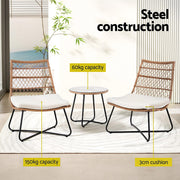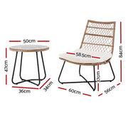 For relaxing afternoons outdoors, you can't go past the Gardeon Outdoor Bistro Set. The set comes with two chairs and a table for a comfortable, intimate setting. Crafted with a sturdy steel frame with a durable powder coating and woven PE rattan, the set is breathable, lightweight, and effortlessly stylish. The table features a generous tempered glass tabletop to hold all your afternoon tea essentials. Designed to withstand various weather conditions, our bistro set is weather-resistant, ensuring its longevity. The non-slip feet provide stability and safety, while the inclined backrest helps you relax at the right angle. Easy assembly makes it convenient for you to enjoy your new furniture in no time. Upgrade your space with this stylish and functional Gardeon Outdoor Bistro Set today.
