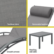 Make the most out of every sunny day with a Gardeon Sun Lounger. The durable steel frame is designed to withstand the wind, rain and shine gracefully, and the premium textilene fabric is comfortable as well as weather and UV-resistant. The slender profile is designed to please, with 5 adjustable backrest settings offering you the perfect position to rest and relax. The padded headrest is adjustable and removable so you can achieve your ideal level of comfort. Best of all, the lounger is easily assembled and can be used anywhere such as the beach, the park, poolside or even indoors. Have more fun in the sun with a Gardeon Sun Lounger.