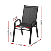 Whether you're hosting an outdoor intimate dinner party or barbeque night for your friends or family, the Gardeon outdoor stackable chair set is perfect to design a gorgeous outdoor setting that will wow your guests. The chairs are stackable, which makes for convenient and easy storage when not required. Designed for years of enjoyment, the chair set boasts classic looks and are made from premium textilene fabric and sturdy metal frame with durable powder coating. The anti-slip feet and good weather-resistance also makes them quite desirable. You can also pair this chair set with our sturdy and beautiful matching table to create a harmonious look.