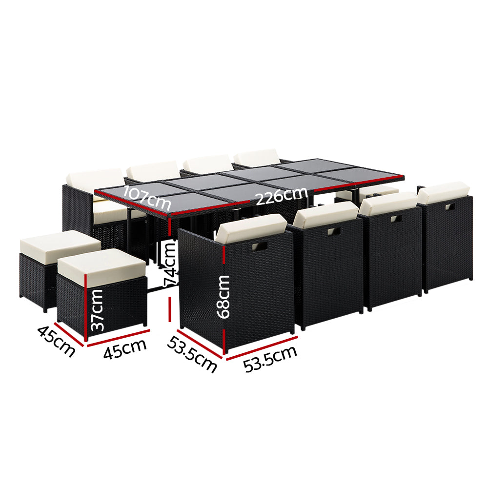 If you're one who likes to appreciate the outdoors, you'll simply love our stylish and yet affordable Hayman 13-piece Dining Set. Designed to seat everyone with the utmost comfort, our Dining Set is padded with high density foam seat cushions for generous support. The frame itself is also made of heavy-duty powder coated aluminium and covered with UV-resistant PE wicker to keep in in great shape in any weather condition. Needless to say, they're made to last. And there’s more.