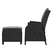 Now you can really sit back and chill in the outdoors with the Gardeon Wicker Recliner Set. Comprising an oversized recliner and matching ottoman, the outdoor ensemble is everything you need for relaxation in elegant wicker style. The set is made of UV-resistant and weather-resistant PE wicker so that you never have to worry about rust, corrosion or weathering issues. The heavy-duty powder-coated steel frame is sturdy and hardy and will stand up to robust use easily. More importantly, the recliner has an adjustable backrest to suit your angle of rest. Better still, the seat cushion is made of high-density foam for ultra-comfort while the zipped cover is weather-resistant, removable and washable. Not least, the useful ottoman is just perfect for putting your feet up. Yes, it is indeed paradise under the sun, moon and stars. Have it outdoors or indoors, the wicker recliner set is equally at home with its exquisite design and unique presence for any home décor enthusiast.