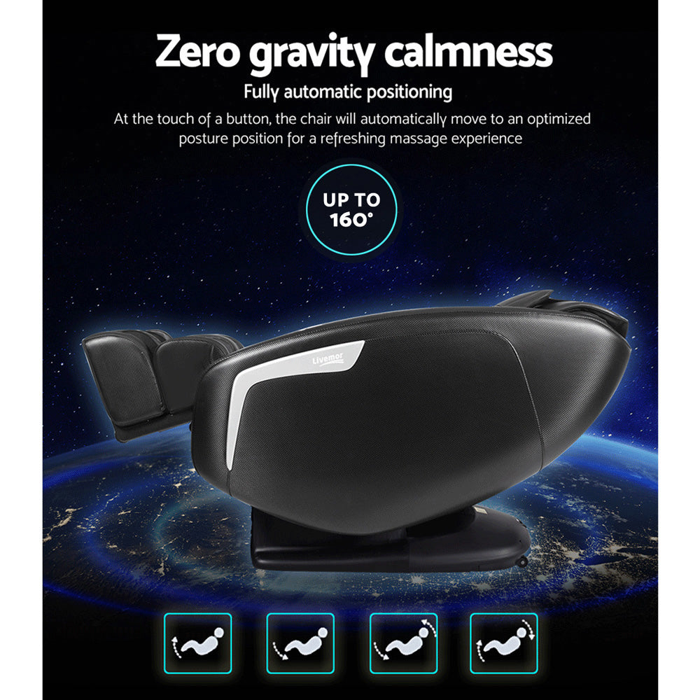 Incorporating the latest smart massage technology and enhanced spatial comfort, our Livemor Ultima 3D Electric Massage Chair is designed to deliver a truly exceptional deep tissue massage experience synonymous with the human touch and more. Among its many technological advancement is an extended 135cm SL track that provides full body massage coverage from your head right to your hamstring muscles. The 3D roller track actually follows the curvature of your spine and extends beyond to your thighs to ensure that all part of your body is not amiss with its soothing massages. Better still, the massage chair also has an automatic body scanning function that maps out the key areas of neck and back for a consistent massage. With a fascinating array of full body massage programs and complex massage techniques with even more airbags, you are certainly not lacking in choice. Adjustments can also be made for massage intensity and speed as well as width. Not least, you can get to enjoy your zero-gravity massage with your favourite music or eBook via a convenient bluetooth connection.